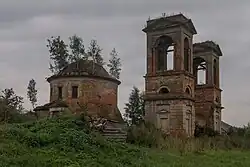 ![]() | Усадьба Покровское | Кимовский район, село Покровское | С конца XVII века — вотчина князей Вадбольских, в роду которых усадьба находилась до 1917 года. Последним владельцем был князь М. В. Вадбольский. Господский дом был деревянный. Крестьяне промышляли хлебопашеством. Женщины, сверх полевой работы, занимались рукоделием, пряли лён, посконь и шерсть, холсты и сукно для своего употребления, а отчасти на продажу[57]. Сохранились Покровская церковь (1767), построенная капитаном князем Михаилом Ивановичем Вадбольским, и два каскадных пруда[18]. |