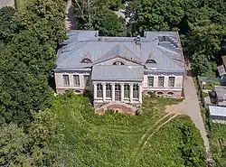 ![]() | Усадьба Пожилино | Ефремов, село Пожилино | Усадьба дворян Лёвшиных известна с середины XVIII века. С конца столетия владел И. А. Лёвшин, женатый на С. В. Тулиновой. Затем наследовал их сын Алексей Ираклиевич Лёвшин, женатый на Елизавете Фёдоровне Брискорн. Затем владел их сын статский советник Фёдор Алексеевич Лёвшин и до 1917 года его наследники. В комплекс входят главный дом, остатки парка на берегу река Красивая Меча, церковь Димитрия Солунского (1825—1875) и церковные здания. Усыпальница Лёвшиных, располагавшаяся рядом с церковью, снесена в 2001 году. Главный кирпичный дом был построен в 1810—1815 годах. С главного фасада дом был одноэтажный с цокольным этажом и парадной лестницей, с противоположного фасада — двухэтажный. Во время пожара 1938 года сгорели крыша и чердачное перекрытие. В 1963—1965 годах на основе частично сохранившихся, а также восстановленных стен был надстроен 3 этаж. Здание использовалось для пионерского лагеря. Исторический архитектурный облик здания был утрачен[13]. С 2006 года объект находится в частной собственности[14]. |