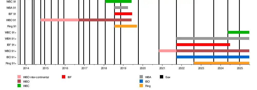 В профессиональном боксе действующий чемпион мира по версиям WBC (2024—н.в.), WBA (2021—н.в.), WBO (2021—н.в.), IBO (2021—н.в.) и The Ring (2022—н.в.) в тяжелом весе. Абсолютный чемпион мира в первом тяжёлом (2018—2019) и в тяжёлом весе (2024).
