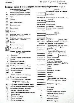 - «Условные знаки для употребления на Топографических, Географических и Квартирных Картах и Военных планах», утверждённые начальником Главного штаба, в июне 1822 года.
