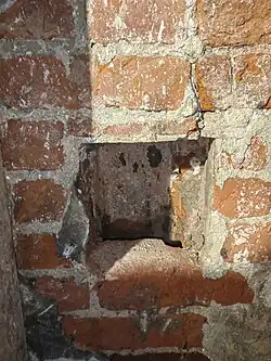 Стены декорированы П. С. Бойцовым вырезанными в кирпичной кладке узорами из ромбов и крестов.