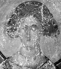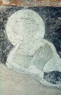 Небольшой фрагмент фрески на северной стене храма, закрытый после реставрации боковым крылом иконостаса, был определён Виктором Филатовым как часть большой сцены Успения Богоматери[8].