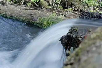 У водопада на склоне коренного берега сформировался ивово-липово-кленовый лес с вязом и березой лещиновый (высота до 10 м) снытьево-пролесниковый с зеленчуком, хохлаткой плотной, ветреницей лютичной, медуницей неясной, копытнем, чиной весенней, крапивой двудомной, лютиком кашубским, вороньим глазом четырёхлистным, купеной многоцветковой, борцом северным, колокольчиком широколистным, фиалками удивительной и холмовой, дремой двудомной, подмаренником средним, хвощом лесным, чистотелом большим. Там на обнажениях известняка, где постоянно течет вода, обильна маршанция многообразная, а над водопадом в полосе брызг растет резуха повислая, занесенная в Красную книгу Московской области, и пузырник ломкий.