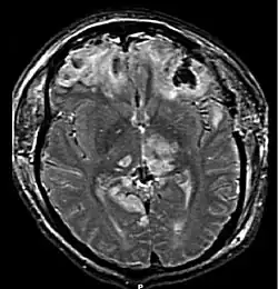 ![]() Компьютерная томография, показывающая ушиб головного мозга | |