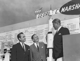 После второй мировой войны в НАСА блистал проектами Вернер фон Браун. Однако президенту Кенеди требовалось собственное доверенное лицо в НАСА, чтобы его контролировать. 14 февраля 1961 года Уэбб был назначен Кенеди администратором НАСА, хотя даже в Sperry Gyroscope не занимал технических позиций и имел образование как юрист.