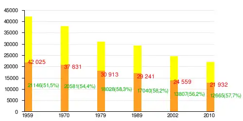 Изменение численности населения района за период с 1959 по 2010 год по данный всесоюзных и всероссийских переписей, а также доля городского населения [20] [21] [22] [23][24] [25]: