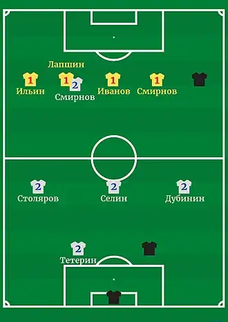 | «Динамо» Москва: Фокин - Селин ... Столяров - Савостьянов, Смирнов, ... Ильин | ||||