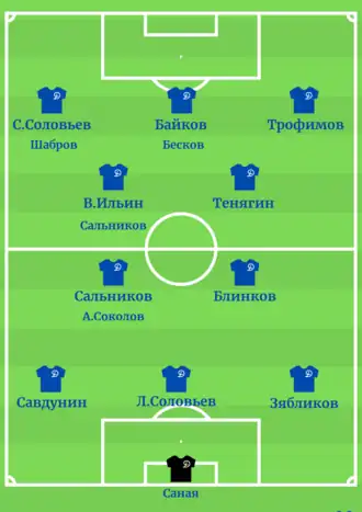 | «Динамо» Москва: Хомич - Зябликов, Савдунин, Васин - Блинков «Динамо» Киев: Лемешко - Голубев, Лерман, Голяков - Юст, Михалина |