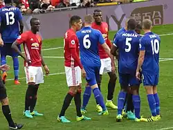 В шестом туре команда принимала на «Олд Траффорд» действующего чемпиона, «Лестер Сити». В стартовом составе впервые с начала сезона в Премьер-лиге отсутствовал капитан Уэйн Руни, подвергшийся критике в британской прессе за его предыдущие выступления. На 22-й минуте счёт в матче открыл Смоллинг, замкнувший подачу с углового удара ударом головой. На 37-й минуте голом отличился Мата после паса Лингарда. Три минуты спустя после нестандартного розыгрыша углового удара Мата сделал пас на Рашфорда, который забил третий гол «Юнайтед». Ещё через две минуты Погба отправил мяч головой в сетку ворот, вновь после розыгрыша углового удара. Во втором тайме Грей дальним ударом смог отправить мяч в сетку ворот де Хеа, установив окончательный счёт в матче. «Манчестер Юнайтед» одержал уверенную победу со счётом 4:1. Игроком матча был признан Поль Погба[54].