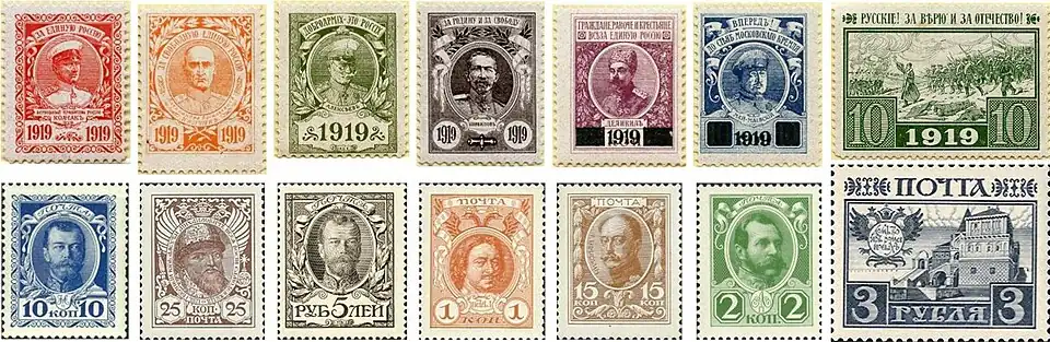 В 1919 году была издана агитационная серия «Вожди Белого движения», получившая также название «Генеральская серия». Серия состоит из семи марок, выполненных в стиле «романовского» выпуска марок Российской империи. Автор её дизайна, заказчик и издатель неизвестен.
