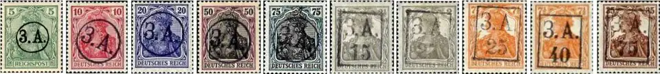 «Новый пример мошенничества: на рынке появились немецкие марки серии „Германия“ с ручной надпечаткой „З. А.“ в круге или с „З. А.“ и новым номиналом в прямоугольнике! После вхождения Железной дивизии в состав Западной Армии её самостоятельная немецкая полевая почта „вследствие веской необходимости“ (!) должна была надпечатать имевшиеся запасы немецких марок известными с I выпуска начальными буквами русских слов „Западная Армия“ и выпустить их в обращение, как это по всей форме хочет засвидетельствовать бывший служащий полевой почты (вероятно, также документально)!»