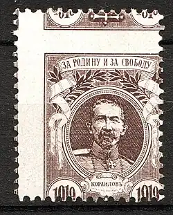 - Л. Г. Корнилов — 1-й командующий Добровольческой Армией: «За Родину и за свободу» (тёмно-коричневая).