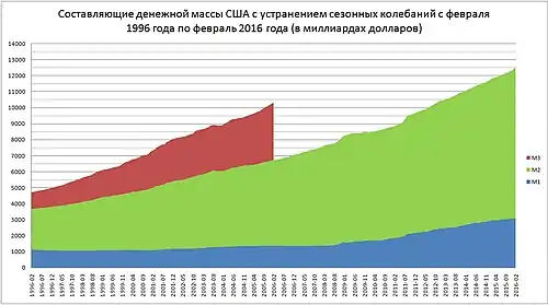 - ↑ FRB: H.6 Release--Discontinuance of M3. www.federalreserve.gov. Дата обращения: 8 марта 2020. Архивировано 3 марта 2020 года.