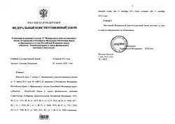 В название закона включается его регистрационный номер с буквенным индексом -ФКЗ и дата принятия (подписания президентом). Нумерация законов последовательна, но не является сквозной, а возобновляется с номера 1 каждый год[3][4], поэтому наиболее краткой корректной ссылкой на закон может быть его номер и год принятия.