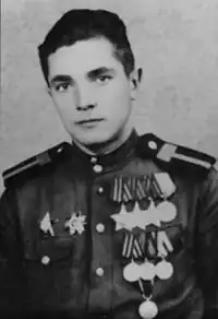 14 января 1945 года во время прорыва обороны противника у населённого пункта Лавецко-Нове (восточнее города Радом, Польша) передал в полк целеуказания о пяти выявленных пулемётных точках, двух миномётных батареях, трёх дзотах, которые затем были выведены из строя артиллерийским огнём. 24 февраля 1945 года награждён орденом Славы II степени[4][8].
