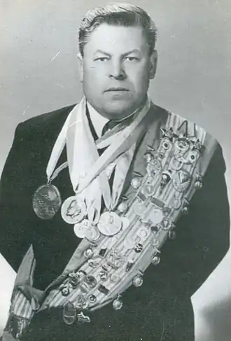- Орден Трудового Красного Знамени (27.04.1957) — «за успехи, достигнутые в деле развития массового физкультурного движения в стране, повышения мастерства советских спортсменов, и успешное выступление на международных соревнованиях»
