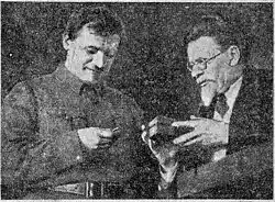 Председатель Мособлисполкома Н. А. Филатов получает от М. И. Калинина орден Ленина, которым 3 января 1934 года была награждена Московская область - Декабрь 1920 — председатель Исполнительного комитета Черниговского губернского Совета