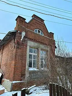 По периметру здания расположены прямоугольные окна, некоторые из которых украшены лучковыми перемычками без иных декоративных элементов. Ступенчатый карниз здания состоит из двух рядов дентикул.