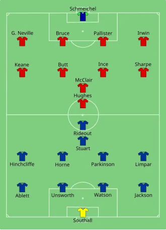 «Манчестер Юнайтед»Раунд 3: «Шеффилд Юнайтед» 0:2 «Манчестер Юнайтед» Раунд 4: «Манчестер Юнайтед» 5:2 «Рексем» Раунд 5: «Манчестер Юнайтед» 3:1 «Лидс Юнайтед» Раунд 6: «Манчестер Юнайтед» 2:0 «Куинз Парк Рейнджерс» Полуфинал: «Манчестер Юнайтед» 2:2 «Кристал Пэлас» (на «Вилла Парк» в Бирмингеме) (переигровка) «Манчестер Юнайтед» 2:0 «Кристал Пэлас» |