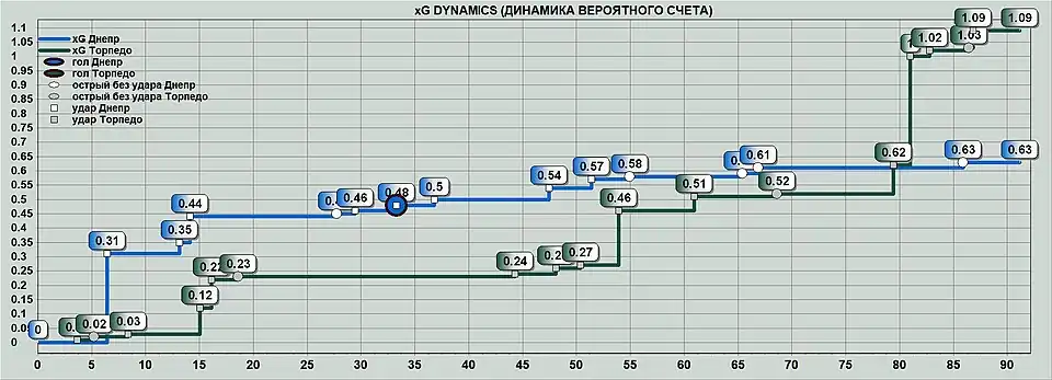 Во втором тайме у футболистов «Торпедо» было два реальных шанса сравнять счёт. Сначала мяч от удара головой Андрея Рудакова зафиксировал голкипер «Днепра» Сергей Краковский, а затем всё тот же Юрий Савичев не воспользовался моментом у ворот соперника. Счёт до конца встречи так не изменился, и «Днепр» впервые в своей истории стал обладателем Кубка СССР по футболу[2].