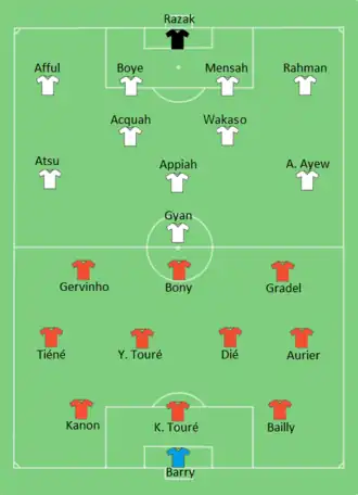 - 1 2 Media Start List: Côte D'Ivoire - Ghana. CAF (8 февраля 2015). Дата обращения: 25 апреля 2015. Архивировано 16 февраля 2015 года.