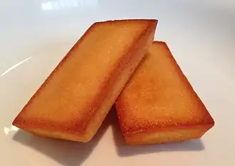 Финансье (фр. financier, «финансист») — небольшой французский миндальный кекс, приправленный топлёным маслом (beurre noisette), обычно выпекаемый в небольшой форме[1][2]. Легкий и влажный, с хрустящей корочкой, напоминающей яичную скорлупу[3][4], финансье также содержит яичные белки, муку и сахарную пудру. Форма кекса — обычно это небольшие прямоугольные буханки, по размеру похожие на птифур[1][3][5].