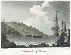22 февраля 1797 года французские войска, не встретив никакого сопротивления, высадились на мысе Каррегвастад возле Фишгарда в графстве Пембрукшир. Высадка прошла сравнительно успешно, однако одна из шлюпок затонула, разбившись о камни, причём было потеряно несколько пушек и боеприпасы к ним. Оставшиеся 17 шлюпок с солдатами, 47 бочками с порохом и неизвестным количеством орудий достигли берега.
