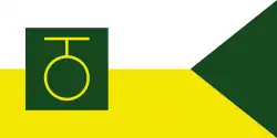 Флаг состоит из зелёного поля заряженного двенадцатью золотыми звёздами, девять из которых образуют дугу, напоминающую лук, и три горизонтальные, также заряженные тремя скрещенными стрелами в центре[6].