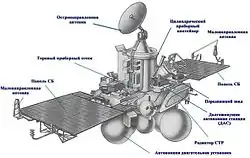 Космический аппарат состоит из орбитального блока (ОБ) и автономной двигательной установки (АДУ)[1].