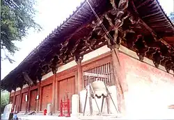 На территории храма находятся одни из самых ранних сохранившихся деревянных построек в Китае. Храм также содержит еще один значимый зал, датируемый 1137 годом, и известный как зал Манджушри. Кроме того, вторая старейшая из сохранившихся пагод в Китае (после пагоды Сунъюэ), построенная в VI веке, находится на территории храма[1]. Сегодня храм внесен в список всемирного наследия ЮНЕСКО и проходит реставрацию.