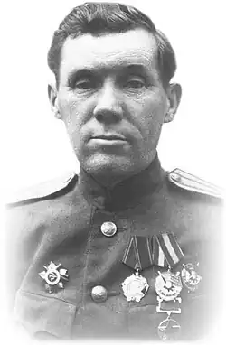 - 1 2 Награждён в соответствии с Указом Президиума Верховного Совета СССР от 04.06.1944 «О награждении орденами и медалями за выслугу лет в Красной Армии»