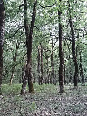 В лесах преобладает дуб Фрайнетто, достигающий 15—20 м высоты. Менее распространены дубы пушистый и каменный. Нижний ярус занимают папоротники и заросли асфодели. Жёлуди являются пищей для белок, ежей, зайцев. Также в лесах обитают барсуки, лисы, гадюки, орлы, совы, сороки и др.[2]