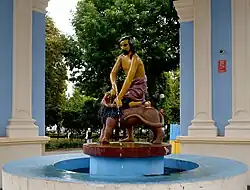 Резервуар соорудили ещё во времена Киевской Руси. Вода в него поступала по деревянным трубам, и жители использовали её для своих нужд. Когда же в средневековой Европе стало модным украшать центральные площади фонтанами и колодцами со скульптурами, киевляне тоже «облагородили» свой резервуар небольшим фонтанчиком. Сверху его накрыли беседкой, а внутри поставили деревянную скульптуру ангела с чашей в руках, из которой вытекала вода. На верхушке беседки появилась фигурка ещё одного ангела, которая вращалась на ветру. Этот павильон называли «фелицианом». Во время праздников духовенство освящало воду в фонтане, а колонны ротонды украшали ветками деревьев. На шею библейскому богатырю вешали нательные крестики, чтобы тот охранял город от беды. В конце XVII века на крыше павильона установили солнечные часы, созданные преподавателем Киево-Могилянской академии французом Брульоном. Но в 1811 году на Подоле случился грандиозный пожар, и часы сгорели вместе с павильоном. Вскоре беседку отстроили, но уже без часов.
