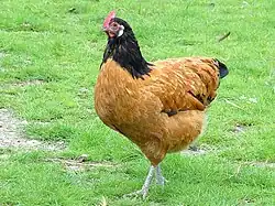 Среднерослая курица деревенского типа. Сложение мощное и компактное, но костяк не тяжёлый. Туловище закруглённой прямоугольной формы, широкое и глубокое. Спина широкая, слегка покатая. Грудь и живот округлые, у курицы более выражены. Голени мускулистые, цевки тонкие, голубовато-серые. Крылья посажены близко. Хвост компактно сомкнут, у петуха сформирован косицами средней длины, с линией спины образует тупой угол, серповидные перья хорошо закруглены. Шея поставлена прямо и держится гордо. Голова умеренно широкая, лицо красное, покрыто мелкими перьями. Гребень листовидный с равномерными зубцами, у курицы конец гребня может слегка склоняться набок. Ушные мочки белые, часто с красным краем. Цвет глаз от оранжевого-жёлтого до оранжево-красного. Клюв голубовато-серый[1][3][4].