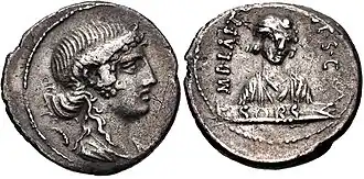 В том же году отчеканили денарии с изображением на аверсе двух женских голов — Фортуны Счастливой (лат. Fortuna Felix) и Фортуны Победоносной (лат. Fortuna Victrix)[8], а на реверсе — алтаря Фортуны Возвращения с надписью «FOR RE»[11].