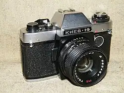 - «Киев-19» (1985—1991) — упрощённый вариант более дорогой модели «Киев-20». TTL-экспонометр, полуавтоматическая установка экспозиции на рабочей диафрагме. Затвор с уменьшенным диапазоном выдержек. Отсутствовала возможность мультиэкспозиции — многократной съёмки на один кадр и отсутствовал автоспуск.