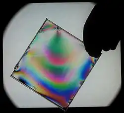 Эффект фотоупругости используется при изучении напряженных состояний конструкций. Для построения моделей, чаще всего, используют бакелит или целлулоид. Для измерения угла поляризации используют полярископ[3].