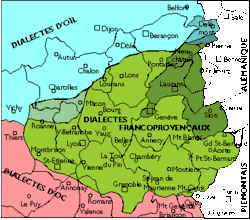| Самоназвание | francoprovençâl [frɑ̃cɔprɔvɑ̃sɑːl]; arpitan [arpitɑ̃], arpetan [arpətɑ̃] |