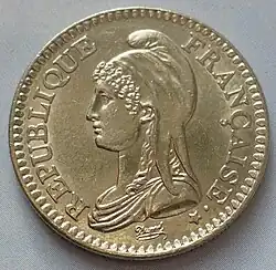 Для некоторых заморских территорий (например, Алжира) выпускались монеты, идентичные по дизайну французским, однако из другого металла. На территории Франции они хождения не имели.
