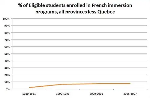 В настоящее время программы французского погружения наиболее популярны в провинции Нью-Брансуик, где французский язык является одним из двух официальных, и на острове Принца Эдуарда. Наименьшей популярностью они пользуются в Саскачеване. Хотя в Западной Канаде наблюдается значительный рост населения из-за притока эмигрантов, он почти не отразился на росте участников программ французского погружения.