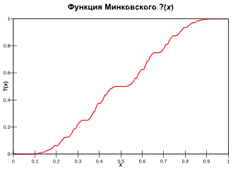 Функция «вопросительный знак» Минковского — построенная Германом Минковским монотонная сингулярная функция на отрезке , обладающая рядом замечательных свойств. Так, она взаимно-однозначно и с сохранением порядка переводит квадратичные иррациональности (то есть, числа вида где и рациональные) на отрезке в рациональные числа на том же отрезке, а рациональные числа — в двоично-рациональные. Она связана с рядами Фарея, цепными дробями, и дробно-линейными преобразованиями, а её график обладает рядом интересных симметрий.