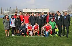 Первый международный матч после аннексии Крыма на территории полуострова состоялся в феврале 2017 года. Тогда на открытый зимний Кубок КФС была приглашена камерунская команда из второго дивизиона «Яунде-2». Гости из Африки добиралась до Крыма 25 часов с пересадками из-за чего опоздали на старт турнира. В итоге первый матч камерунцы сыграли против «ТСК-Таврии», которой уступили со счётом (1:3)[150]. Победителем турнира стал саратовский «Сокол», обыгравший в финале «ТСК-Таврию» (4:2)[151]. Участие российских клубов в турнире вызвал протест со стороны УЕФА, а исполняющий обязанности президента РФС Сергей Прядкин пояснил, что участие российских клубов на турнире в Крыму не было согласовано с РФС[152]. Кроме того ноту протеста из-за участия камерунской команды направил представителю Камеруна посол Украины[153]. После этого российские клубы перестали приезжать в Крым во избежания проблем[136]. Спустя месяц после проведения кубка сотрудники ФСБ выявили 15 граждан Камеруна и одного гражданина Бельгии, которые с просроченными визами проживали в посёлке Орджоникидзе и не покинули Крым в установленный срок[154].