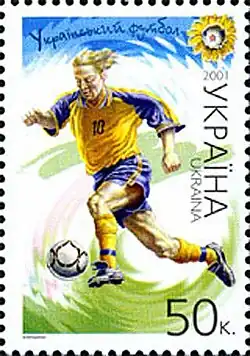 - ↑ Введення в обіг поштової марки «Національна збірна України з футболу». (укр.). КМД УДППЗ «Укрпошта». poshta.kiev.ua. Дата обращения: 18 августа 2018. Архивировано 7 января 2018 года.