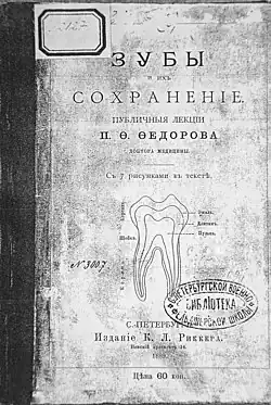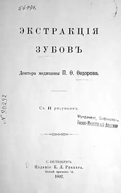 В 1892 году вышла книга П. Ф. Фёдорова «Экстракция зубов» (Издание К Л. Риккера). В её основу легли ранее прочитанные в Кронштадском морском госпитале «беседы» «Основные принципы зубоврачевания».