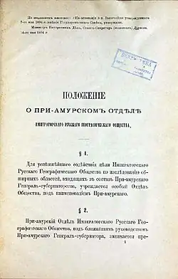 Положение о Приамурском отделе Императорского Русского географического общества: