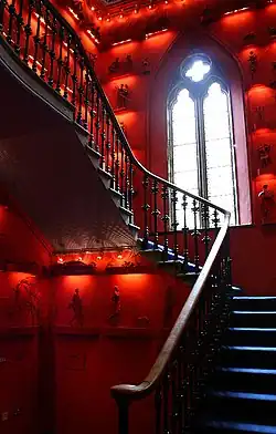Разные художники, работавшие над обновлением интерьера здания, стремились к созданию гармонии между прошлым и современным искусством с их декоративными элементами. Красная дорожка, приглашающая ко входу, выполнена Каролиной Винсент (англ. Carole Vincent) в виде узорной полосы из разноцветных бетонных плиток. Движение по главной лестнице сопровождают выставленные на полках по стенам скульптуры Джилл Уотсон (англ. Jill Watson). Более 200 гипсовых фигур представляют проходившие театральные фестивали с оперными и балетными музыкальными спектаклями. На полках верхнего яруса лестницы «Ступени к искусству» показаны фигуры аплодирующих зрителей. Окна Кристиана Шоу (англ. Christian Shaw) усиливают освещённость интерьера благодаря стеклянным осколкам и специальным линзам, вплавленным в жёлтое снаружи листовое стекло. Декоративные элементы пламенеющей готики активно использовал Жаки Понселе (англ. Jacqui Poncelet), чтобы нагляднее подчеркнуть связь современности и прошлого[9].