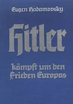 В первой из своих опубликованных в 1933 году книг «Пропаганда и национальная держава: организация общественного мнения для национальной политики» (нем. Propaganda und nationale Macht: die Organisation der öffentlichen Meinung für die nationale Politik) Хадамовски писал:[4]