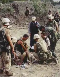 Морриса оттащили на безопасное расстояние от поля боя. Вскоре к нему присоединились специалист Майкл Риваковски, Брайан Ворт и специалист Кристофер Ведвик, тоже пострадавшие в результате взрывов гранат.[37]