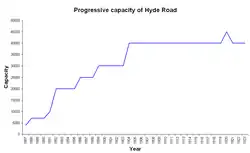 С ростом популярности клуба стадион также подвергался перестройке и улучшениям. В 1890 году клуб вложил в улучшение стадиона 600 фунтов стерлингов. В 1896 году на стадионе появились раздевалки для игроков[6]. В 1898 году была установлена новая трибуна, за которую клуб заплатил 1500 фунтов. В 1904 году на стадионе появилась ещё одна трибуна, что стоило клубу 2000 фунтов стерлингов. После этого «Хайд Роуд» вмещал 40 000 зрителей на трёх трибунах[7]. После этих улучшений «Хайд Роуд» принял несколько престижных матчей, включая матч между сборными Футбольной лиги Англии и Ирландской лиги, а также полуфинал Кубка Англии между «Ньюкаслом» и «Уэнсдей»[8]. В 1910 году над трибунами была возведена крыша, которая покрывала 35 000 зрительских мест[9].