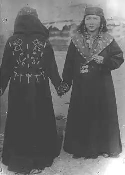 У качинцев бытовала ещё шапка покроя «конфедератка». Она имела высокую мягкую тулью, сшитую из четырёх пятиугольных клиньев, соединённых вместе на макушке и образующих четырёхугольный верх. Тулью делали из плиса и вышивали шёлком, верх её свободно падал на плечо. У кызыльцев женщины меховых шапок почти не носили, они пользовались русскими платками и шалями.